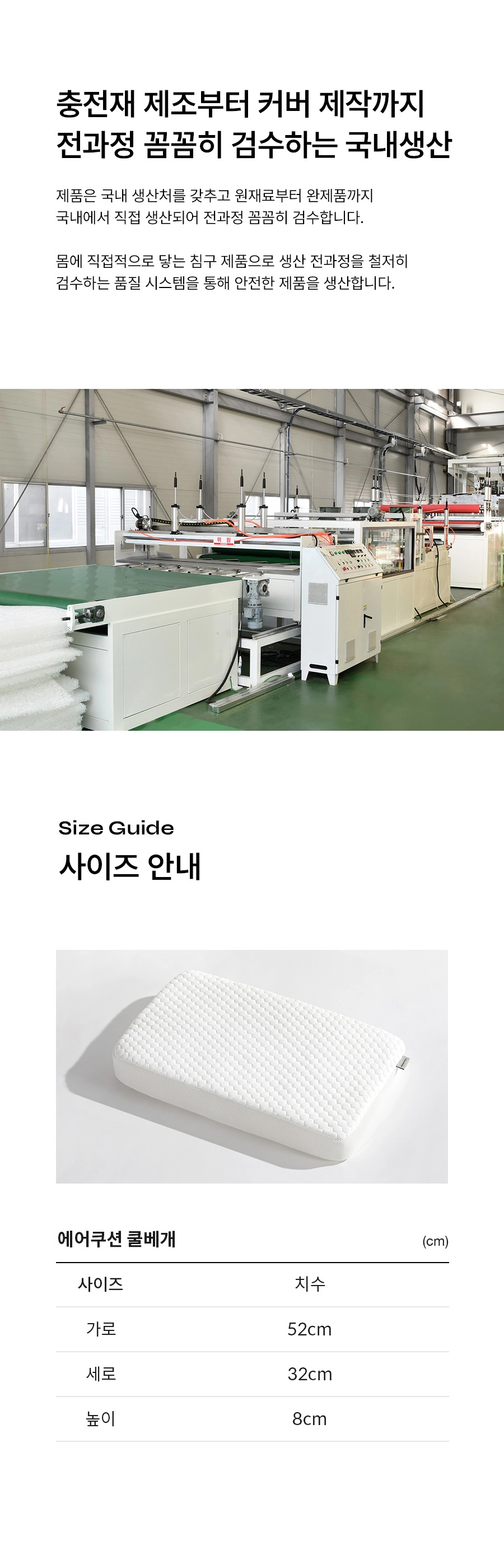 - 충전재는 30℃ 이하의 흐르는 물로 세척하며 세탁기 사용을 금합니다.